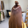 Снятие также без травмирования своих волос. Срезаем фиксирующий узел на термоволокне и расплетаем косичку.